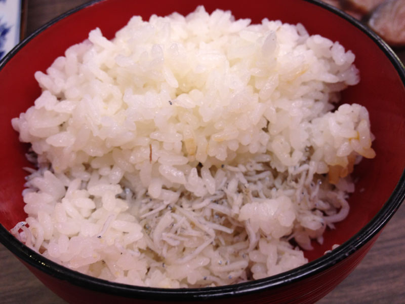 このサバとシラス入りご飯を食べたら店内に響き渡る音量でグハ!と言ってしまいました。うますぎて。 シラス入りご飯と魚汁。