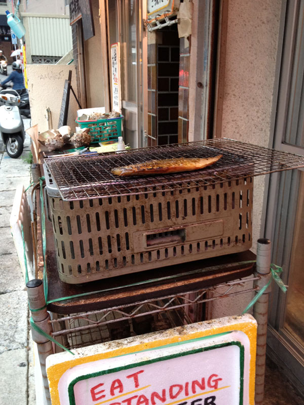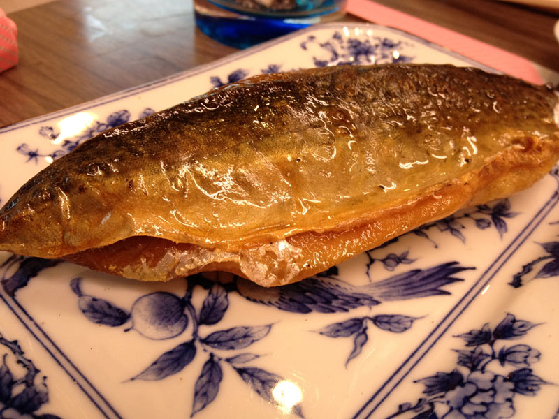 サバの一夜干し、こんな感じで外で炭火焼してくれました。これが一番うまかった!